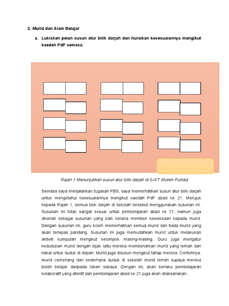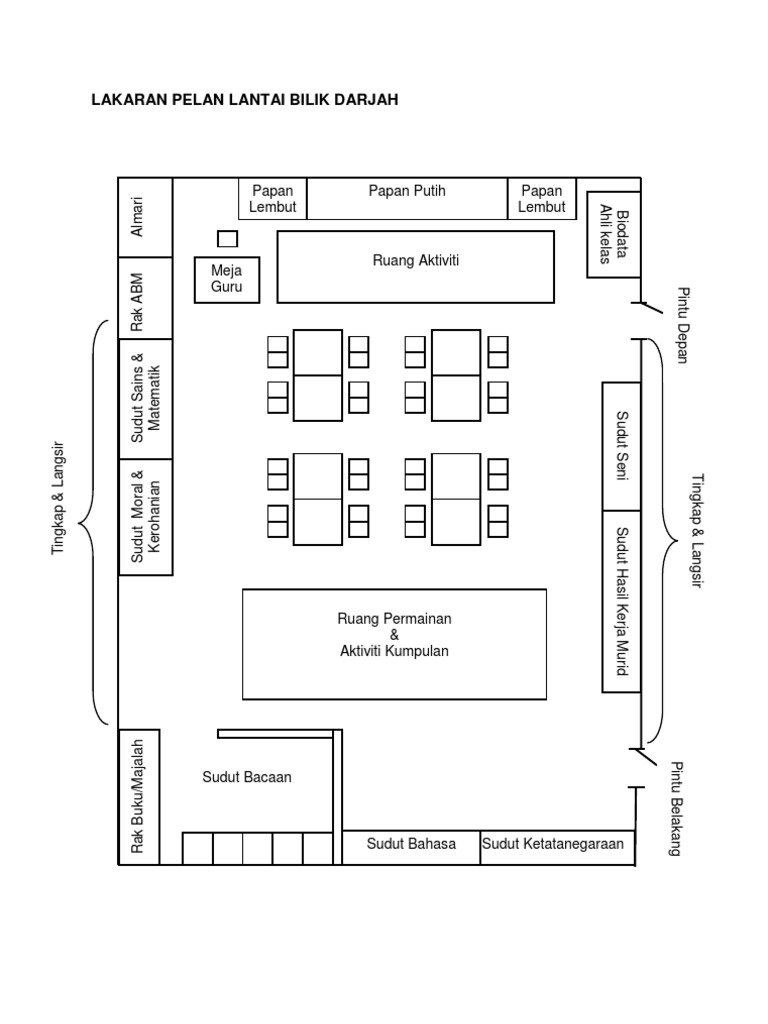 Murid permata (pelajar malas tidak aktif) yang memerlukan perhatian guru diletakkan paling hampir. Begitu juga dengan hiasan bilik darjah dan soal kebersihan perlu diberi perhatian. # susun atur bilik darjah 1. So please help us by uploading 1 new document or like us to download Dan lebih penting ialah susunan atau susun atur bilik darjah mestilah sesuai kerana ia akan mempengaruhi keberkesanan pengajaran guru.